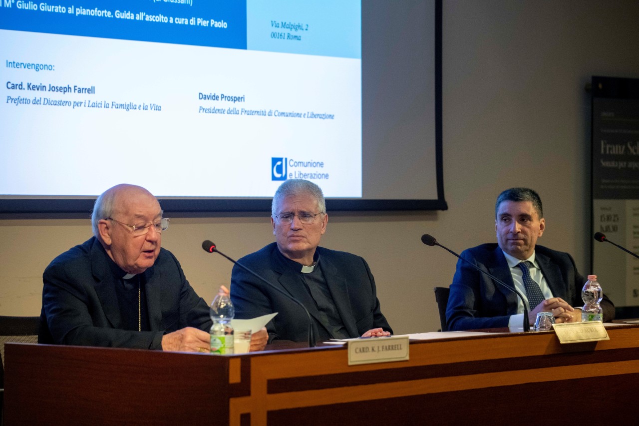 Además del cardenal Farrell, intervinieron en la celebración don Andrea D'Auria, director del Centro Internacional, y Davide Prosperi, presidente de la Fraternidad de Comunión y Liberación. A continuación, el profesor Pier Paolo Bellini presentó el concierto en directo de la Sonata per arpeggione e pianoforte, D. 821, de Franz Schubert, interpretada por el maestro Andrea Noferini al violonchelo y el maestro Giulio Giurato al piano.