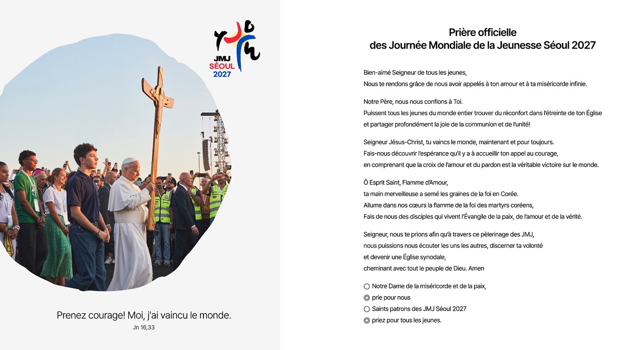 Comité d'Organisation Local (COL) des Journées mondiales de la jeunesse (JMJ) Séoul 2027 rend publique aujourd'hui la prière officielle qui accompagnera les jeunes et toute la communauté ...